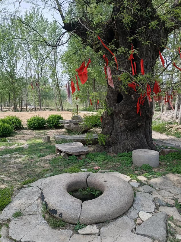 大槐樹樹齡600多年,見證了朝代的更迭,歷史的滄桑,及新社會的蓬勃。春天,大槐樹粗壯的枝干上,吐出了嫩綠的枝芽,顯得?機(jī)勃勃,村民多有來這祈福的,將紅繩綁在新發(fā)的枝干上,密密麻麻,山風(fēng)裊裊,似一個起舞的紅裙少女。