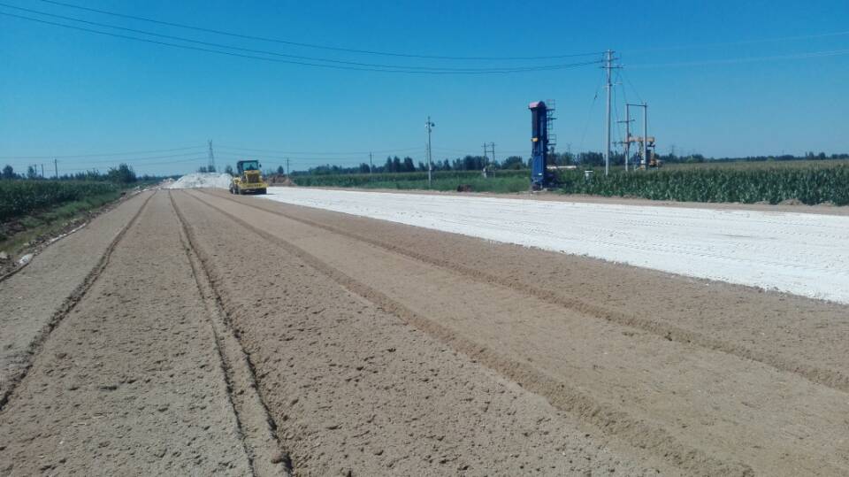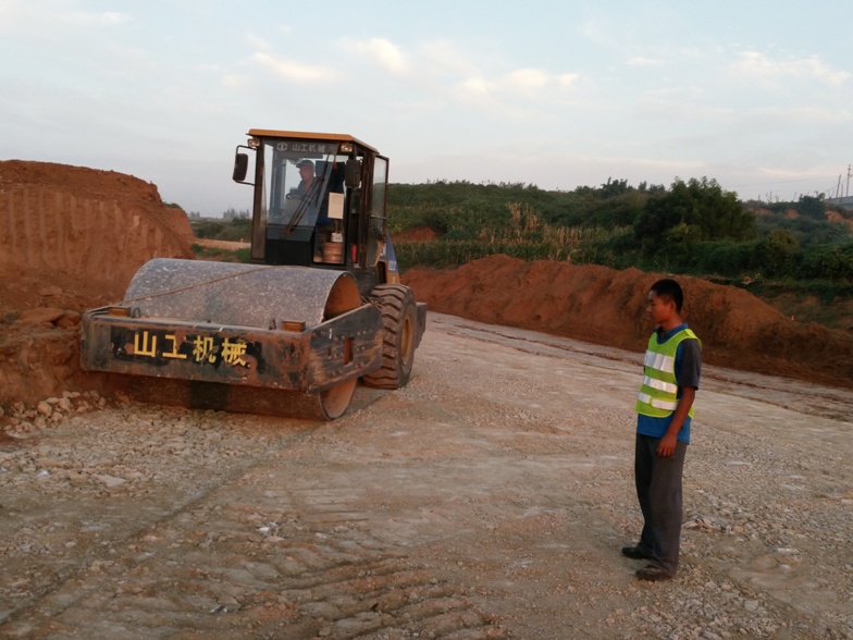 基礎(chǔ)分公司S102路基三分部徐福瑞現(xiàn)場控制基層碾壓
