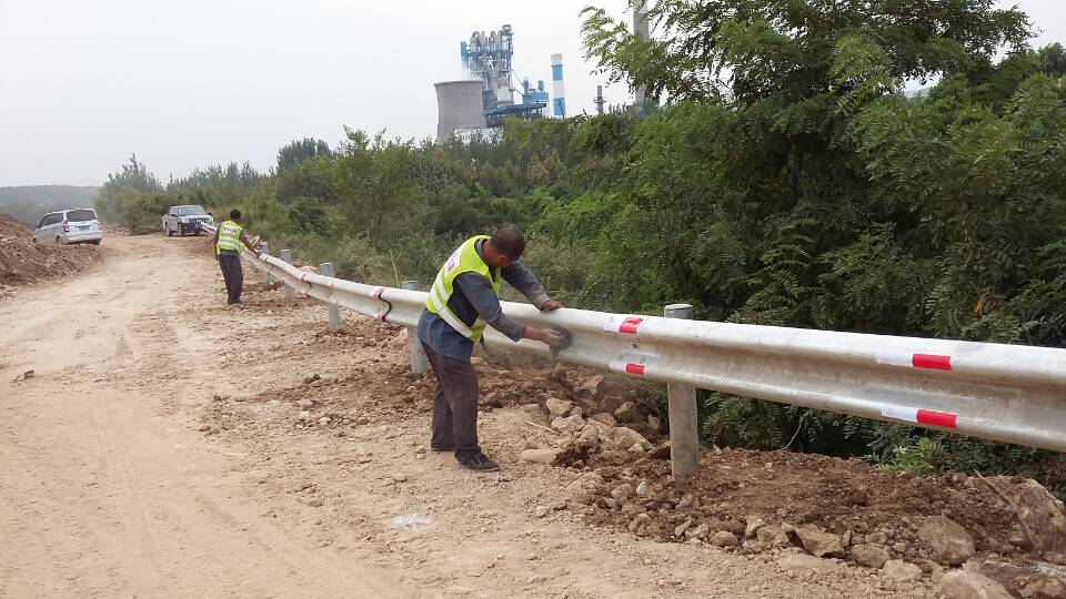 基礎(chǔ)分公司S102路基三分部工人安裝防撞護欄