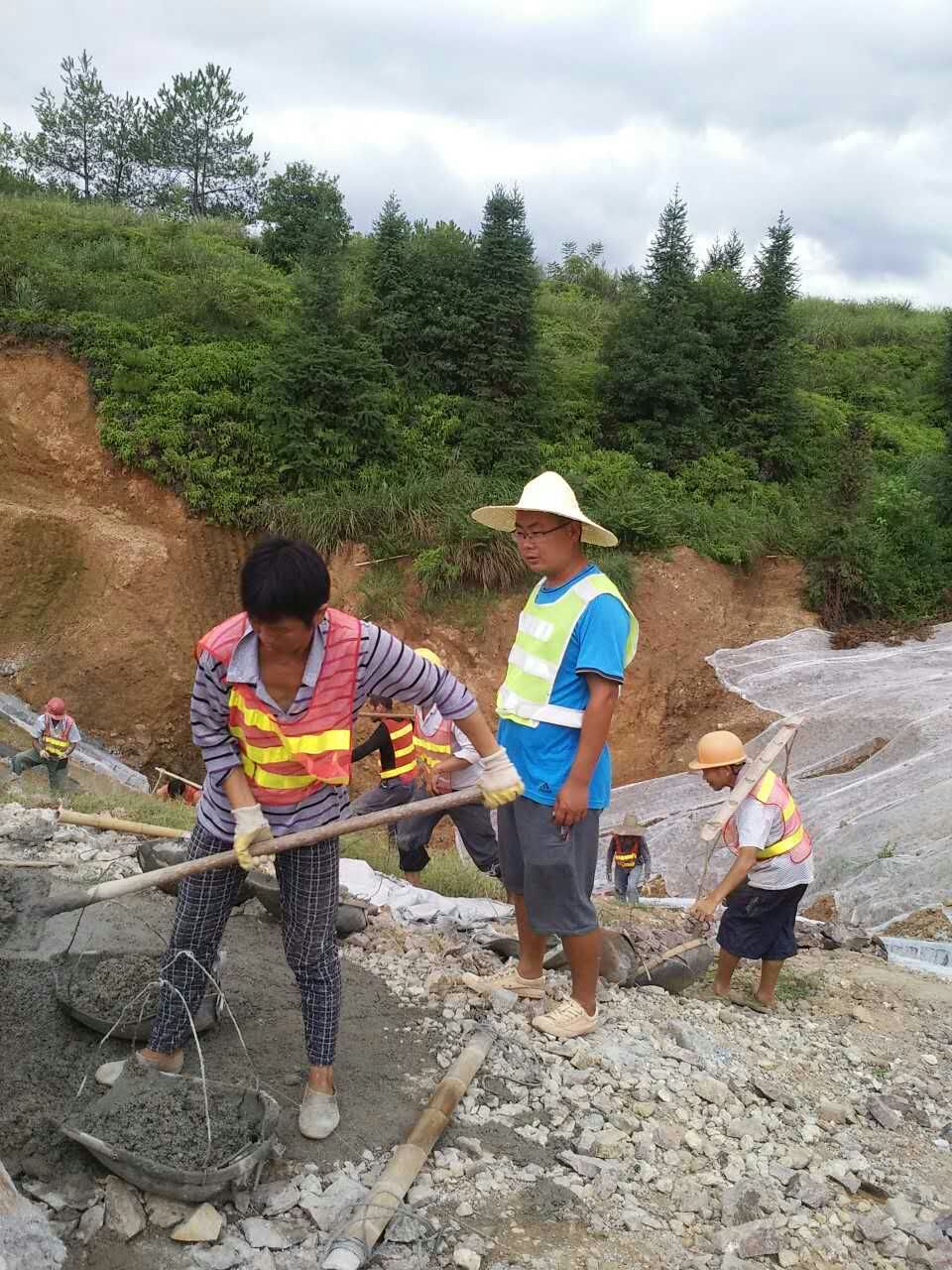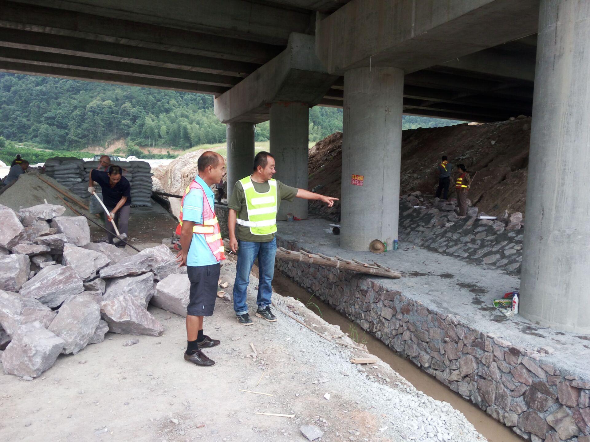 基礎(chǔ)分公司江西項目部質(zhì)檢負責(zé)人金新平檢查橋下護坡施工