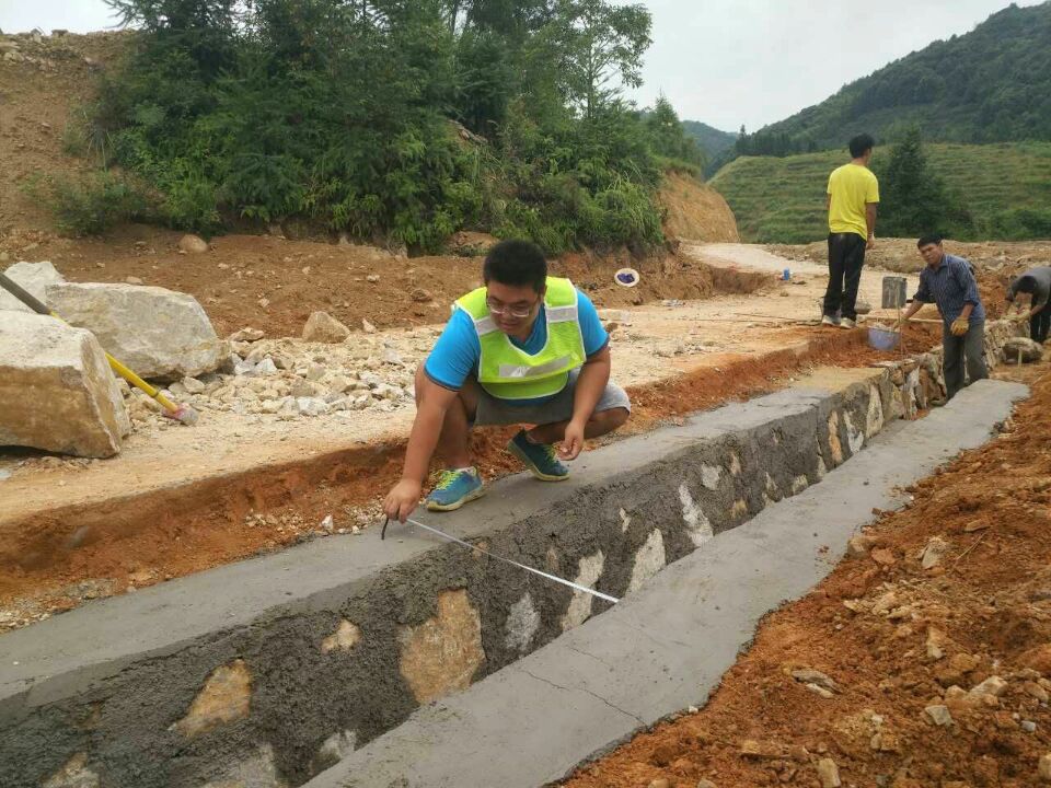 基礎(chǔ)分公司江西項目部質(zhì)檢員劉光財現(xiàn)場檢查排水溝尺寸