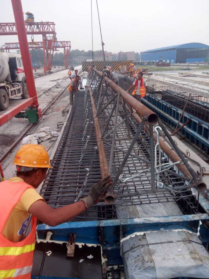 橋隧分公司張店梁場箱梁吊裝入內(nèi)模施工現(xiàn)場