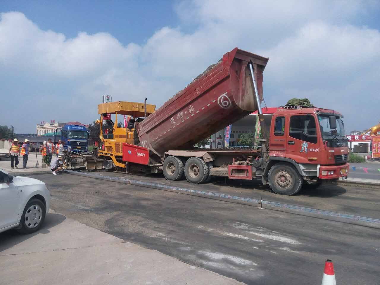 路面分公司博草線瀝青攤鋪施工現(xiàn)場