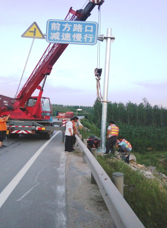 養(yǎng)護分公司沂水交安項目標(biāo)志牌安裝現(xiàn)場