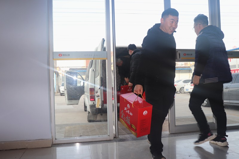2023年1月8日上午,臨臨高速六標(biāo)項(xiàng)目部,春節(jié)福利發(fā)放現(xiàn)場,熱鬧非凡。拎著喜旺“有禮了”,提著油,抱著鴨蛋和山藥,每個(gè)人臉上都洋溢著喜悅和幸福的笑容。