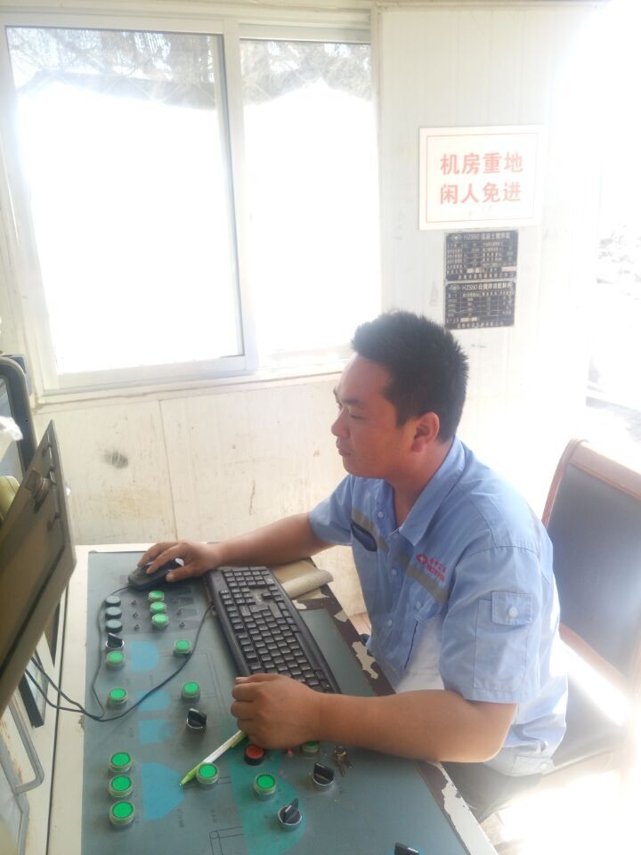 10月1日上午10:00,橋隧分公司沂源橋梁項目部拌合站站長玉云東堅守在崗位。