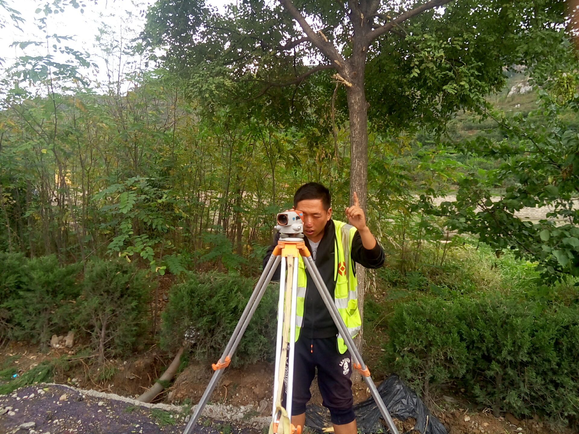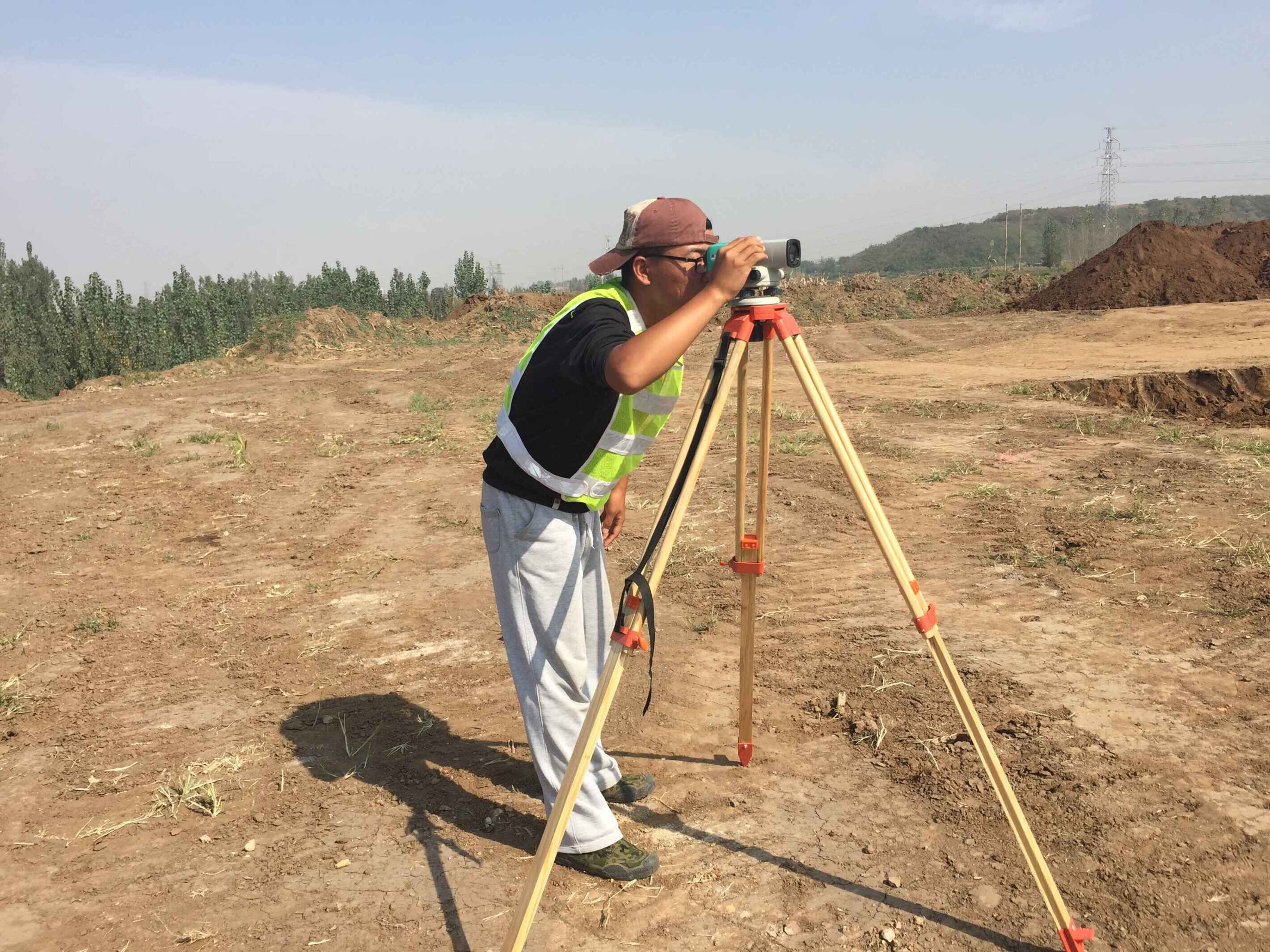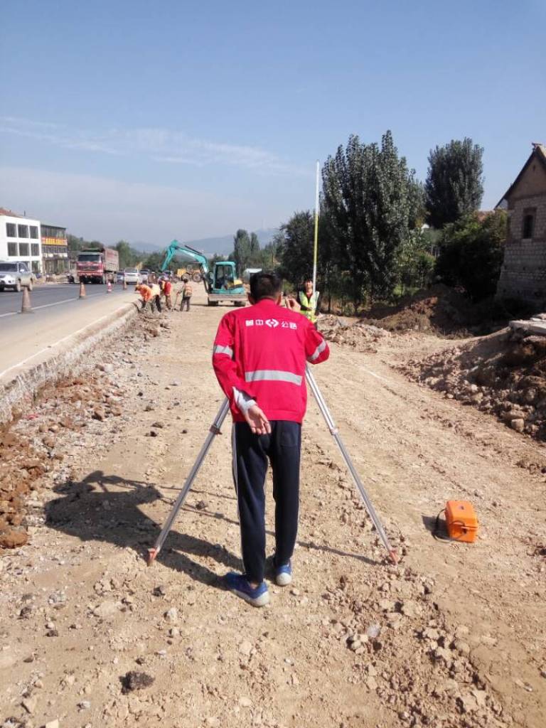 10月1日上午11:00,基礎分公司S102項目測量員劉旭進行測量工作。