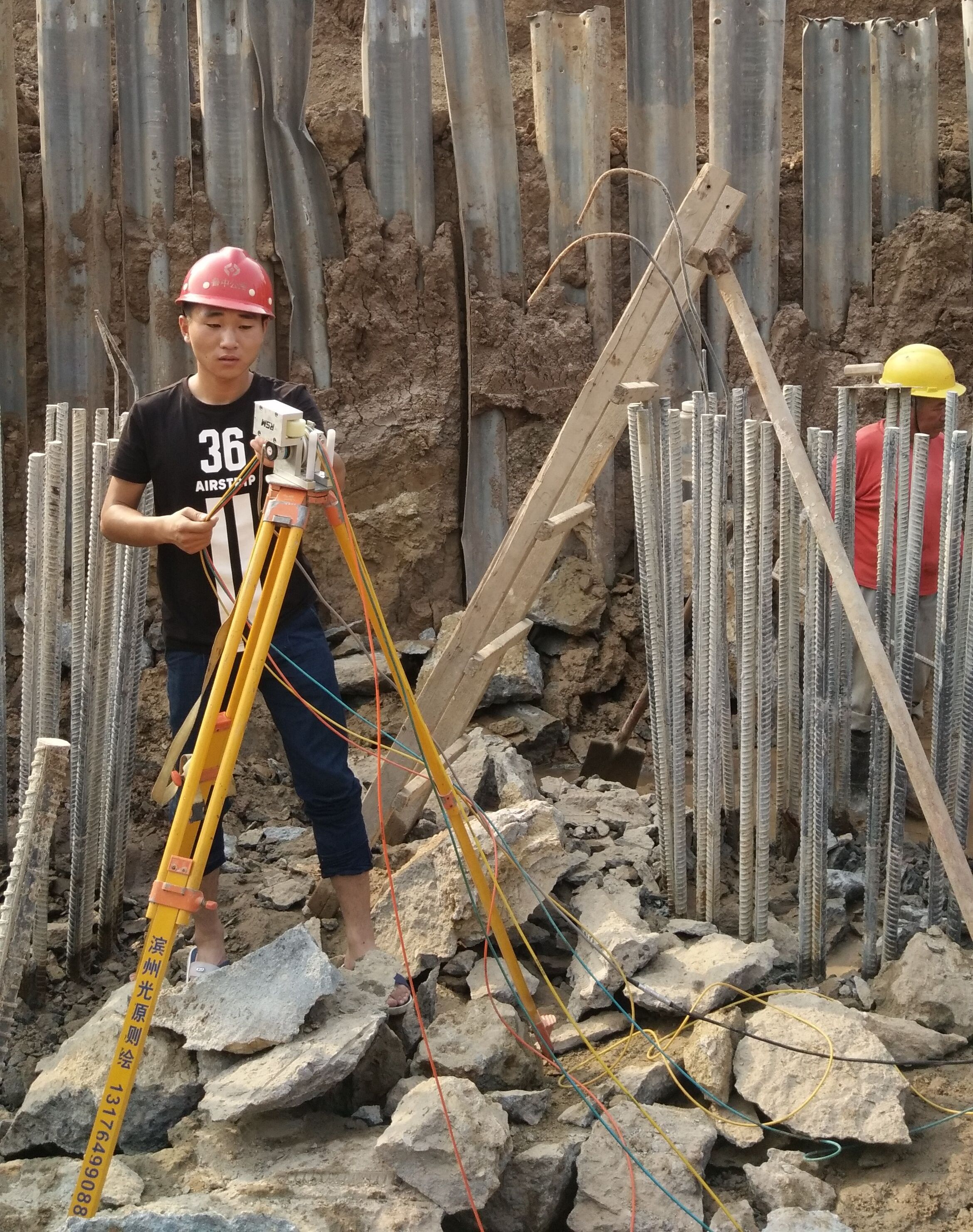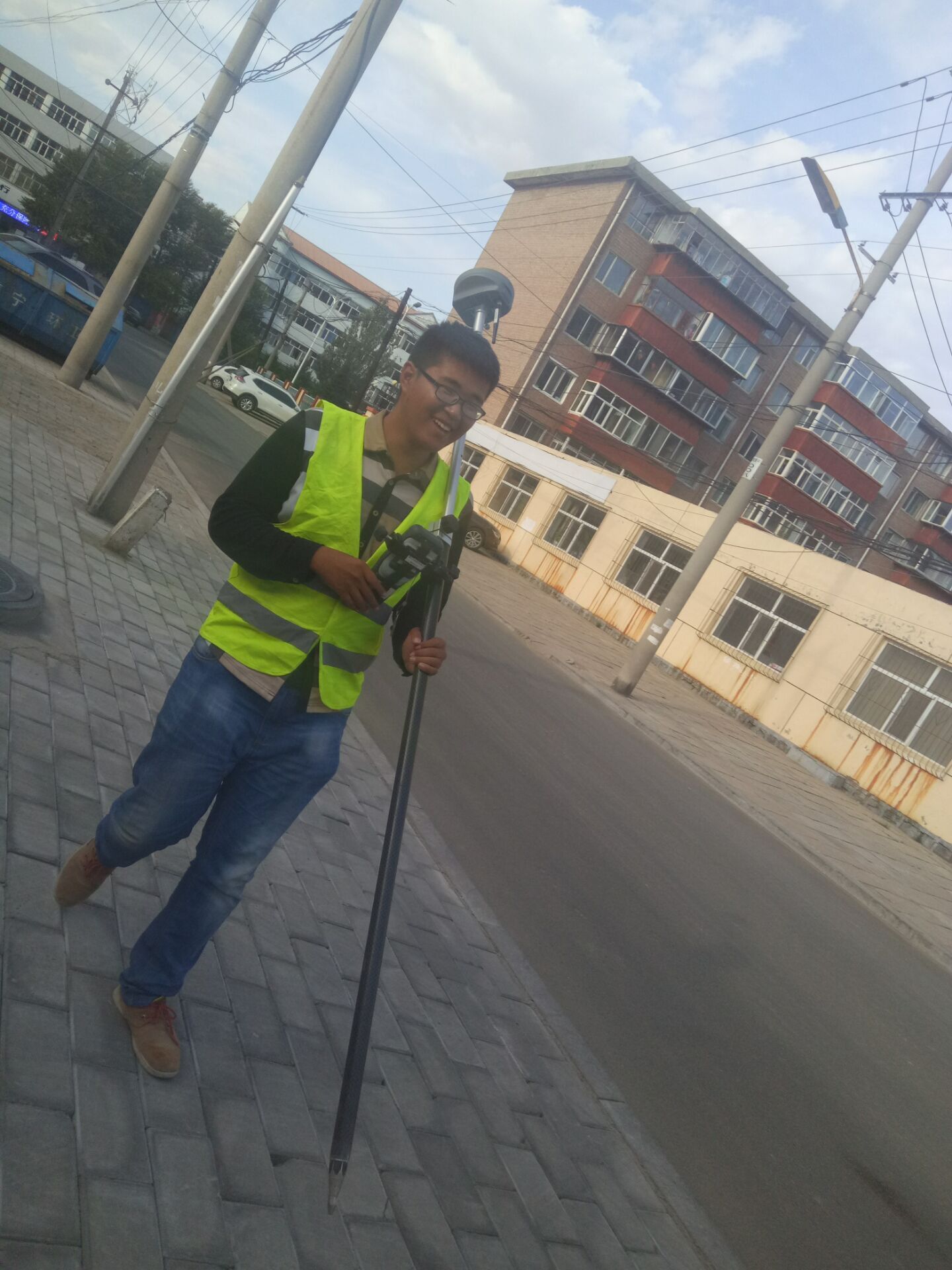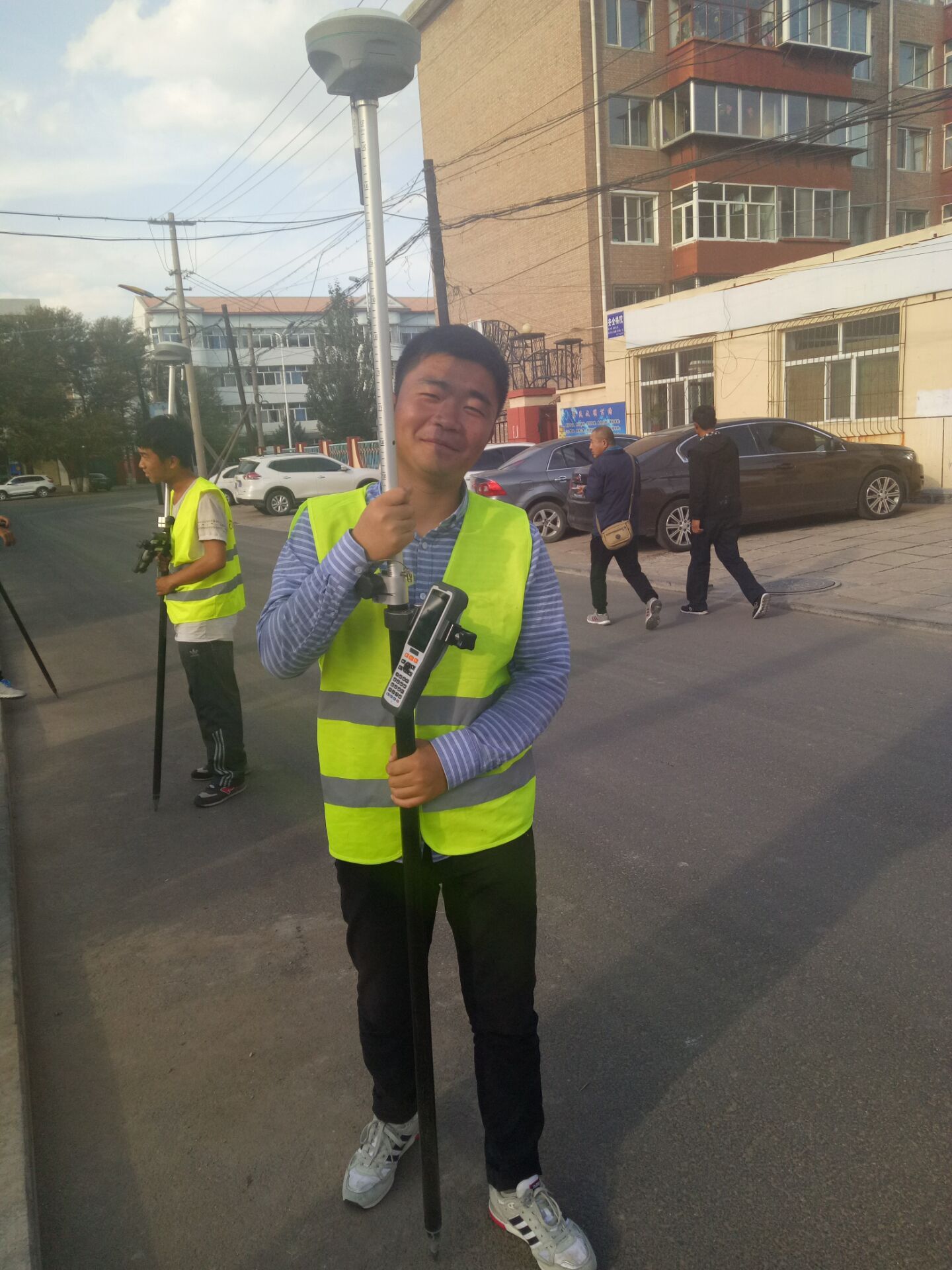10月1日上午11:00,基礎分公司S102項目測量員劉旭進行測量工作。