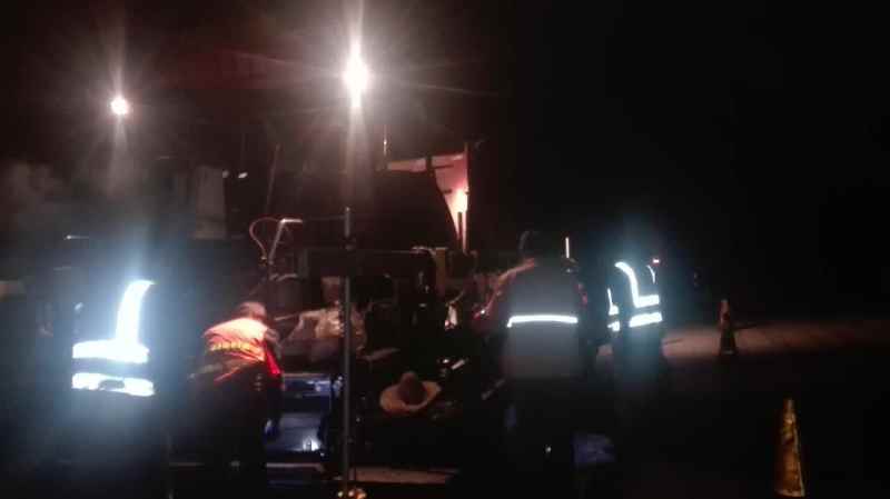 10月1日凌晨兩點,路面分公司博草線瀝青面層攤鋪施工現(xiàn)場。