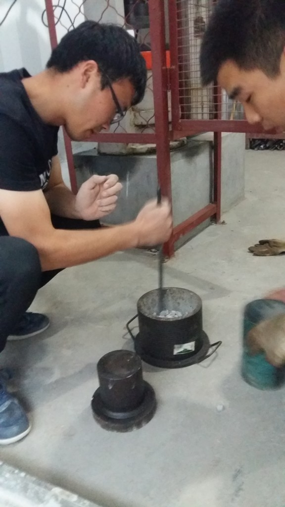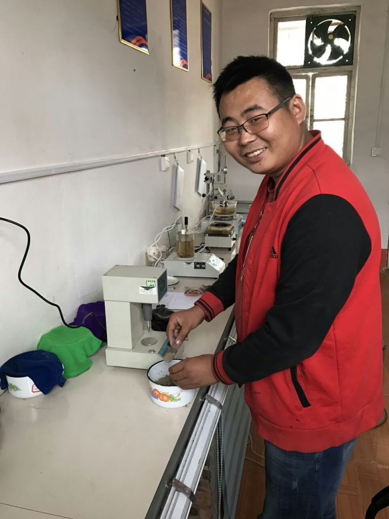 10月1日上午10:20,市政分公司試驗員楊峰在進行集料搗實密度試驗。