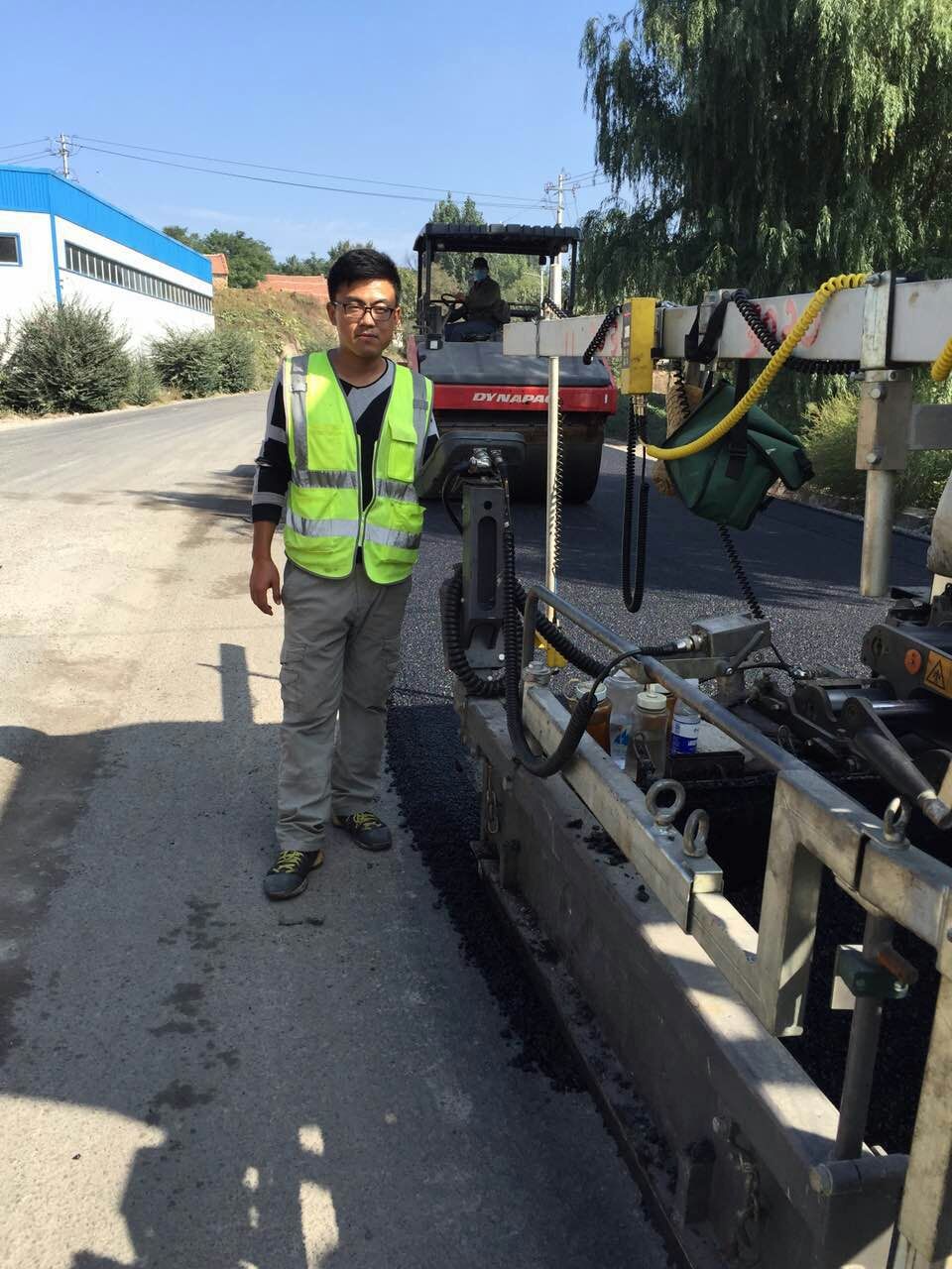 10月1日上午10:00,路面分公司施工隊長張棟皓在檢驗攤鋪機運轉。
