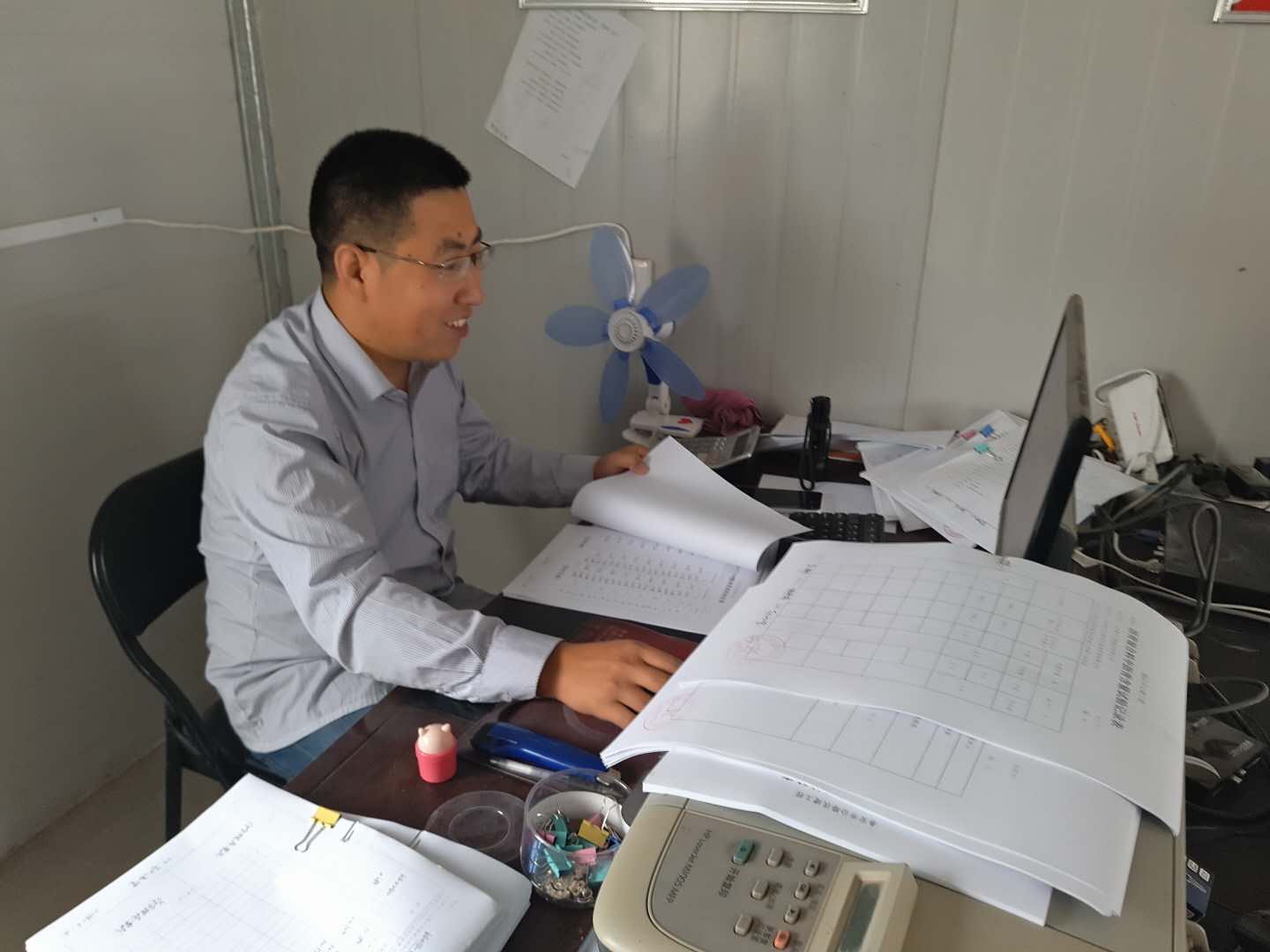 10月1日10點45分,橋隧分公司樂胡路試驗員姚進洪正在整理試驗資料。