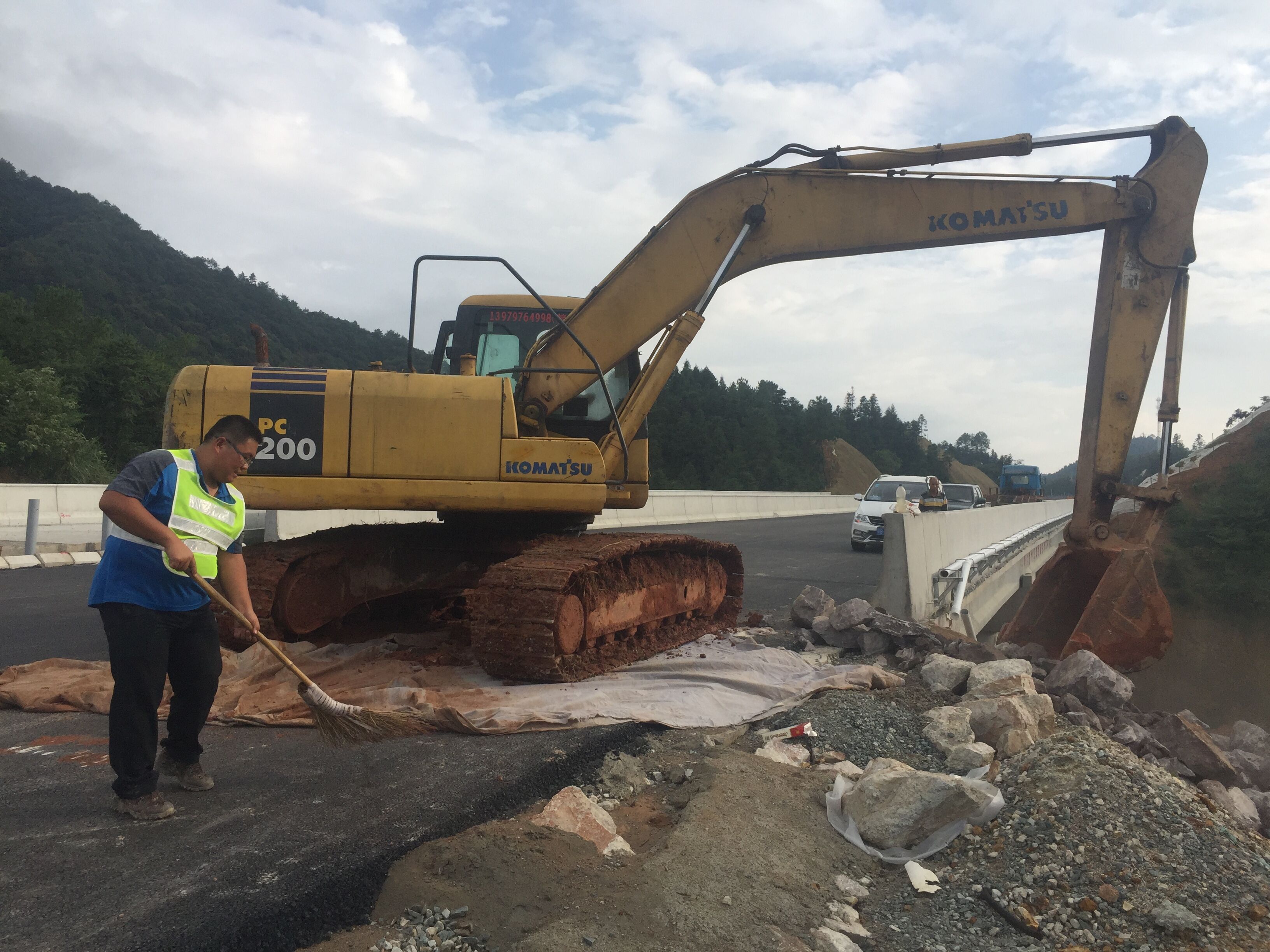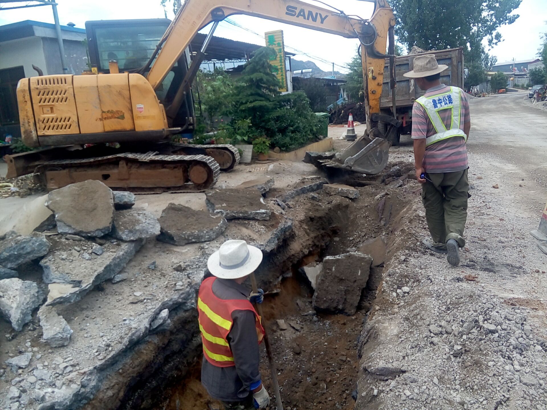 10月1日下午15:30,養(yǎng)護分公司九東項目部排水溝挖掘施工現(xiàn)場。