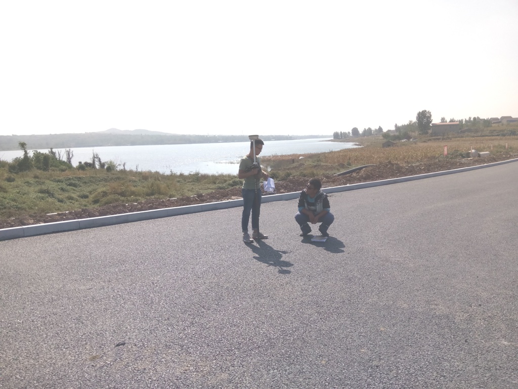 10月1日上午10:00,市政分公司測量員郝璠、唐浩源在文昌湖項目進行測量工作。