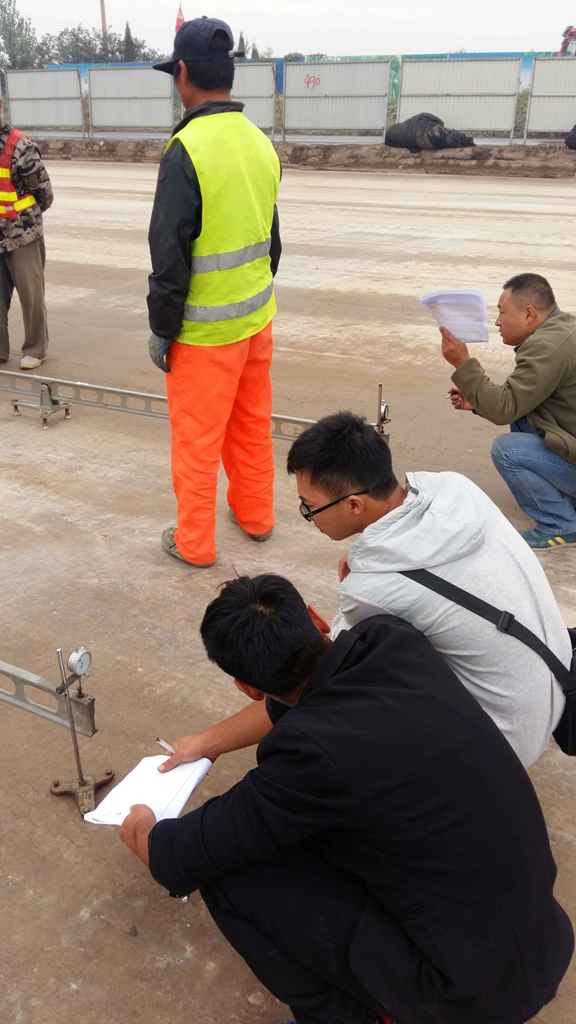 10月1日上午10:00,市政分公司試驗室主任王同余在S102工地進行彎沉值測定。