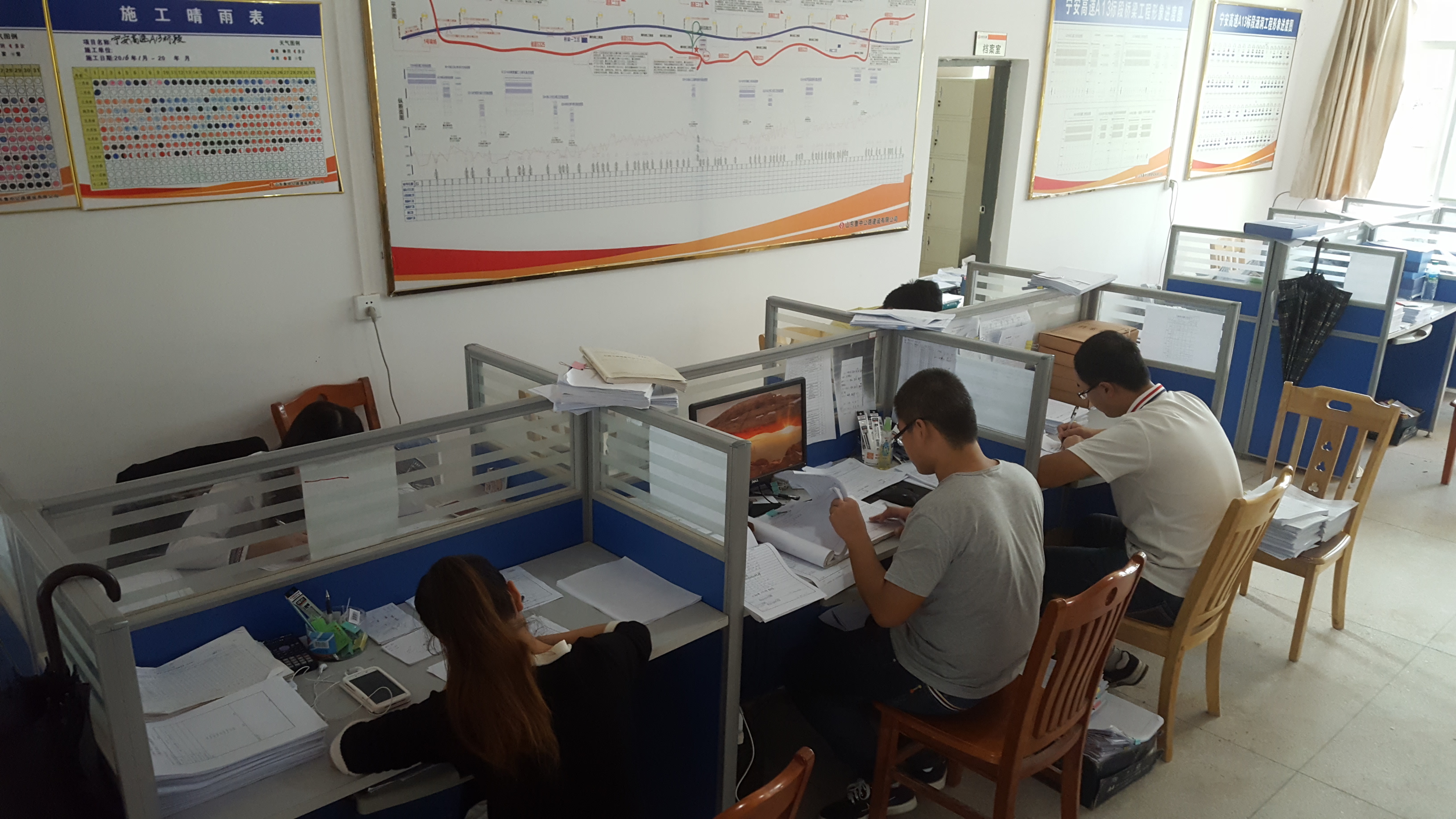 10月1日上午10:00,基礎分公司江西寧安項目部工程部人員堅守崗位。
