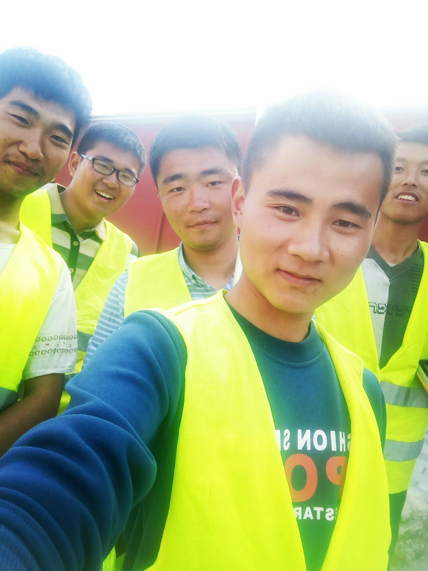 10月1日下午16:00,測繪項目部的小伙子們?yōu)樽鎳鴳c生合影留念。