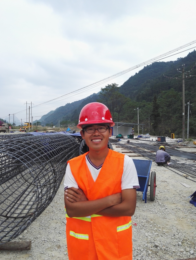 10月1日上午10:50,貴州項目部技術負責人劉永吉、施工員吳琦在路基填方施工現(xiàn)場合影。