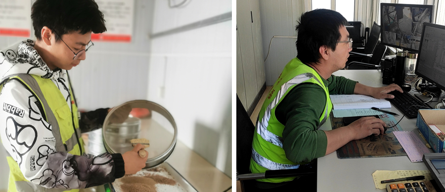 西里綜合場(chǎng)站試驗(yàn)試驗(yàn)室進(jìn)行原材料檢測(cè)、西里綜合場(chǎng)站砼拌合站的操作員