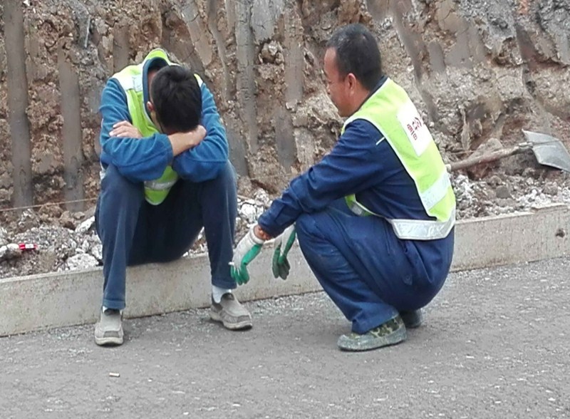 你看施工隊(duì)長(zhǎng)坐在模板上就睡著了、壓路機(jī)司機(jī)把車一停就進(jìn)入夢(mèng)鄉(xiāng)、攤鋪機(jī)司機(jī)連隔噪音的耳機(jī)都不用就睡過(guò)去了。這樣的事情每天在工地上都會(huì)出現(xiàn)??粗@些年輕的施工員和這支奮進(jìn)的施工隊(duì)伍,沒(méi)白沒(méi)黑的在施工現(xiàn)場(chǎng)拼著體能挑戰(zhàn)極限,往往早飯冷到午飯前了還沒(méi)時(shí)間吃,夜以繼日的推進(jìn)著施工進(jìn)度,有誰(shuí)能說(shuō)他們不是在戰(zhàn)斗?