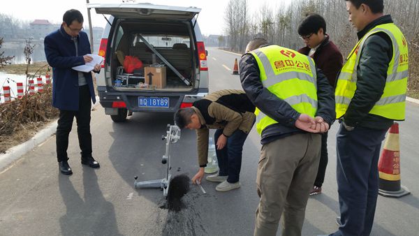 郯城縣白馬河左右堤路面建設(shè)工程交工檢測現(xiàn)場